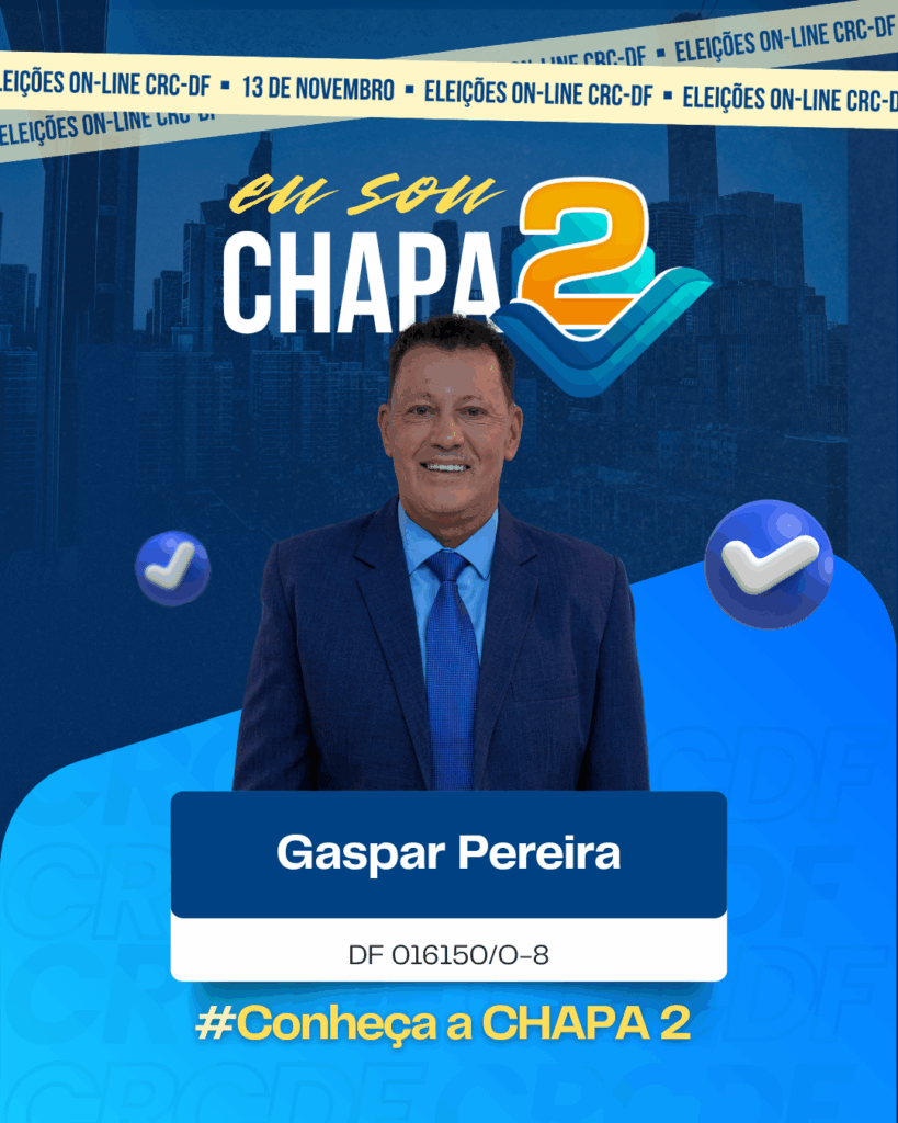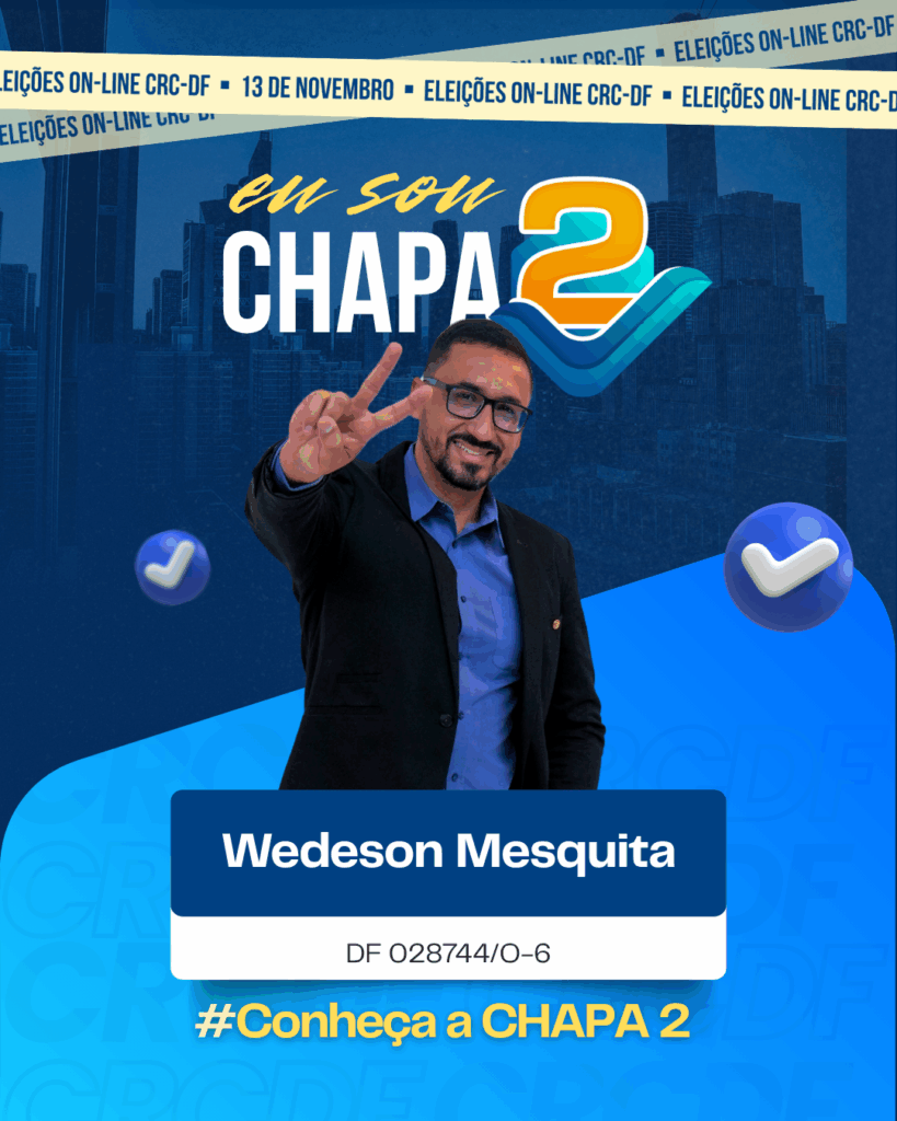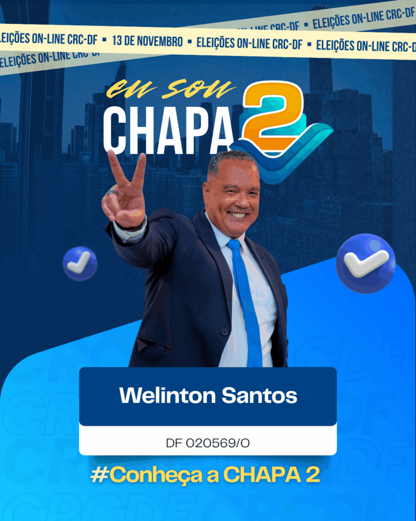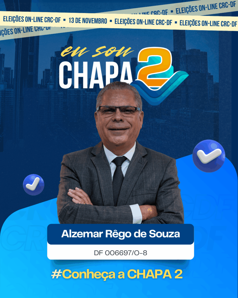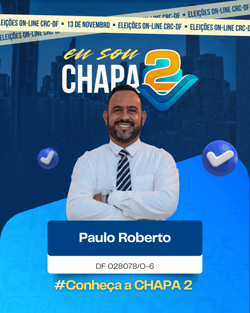 Empresário contábil com 20 anos de profissão, master coach pela Febracis e ex-consultor do Sebrae-DF. Palestrante e especialista em micro e pequenas empresas, é conselheiro suplente desde 2018. Integra a Chapa 2 para contribuir com o desenvolvimento da contabilidade no DF.