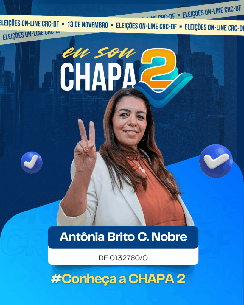 Contadora e empresária com mais de 30 anos de experiência no setor contábil. Graduada em Ciências Contábeis pela Universidade Católica de Brasília e pós-graduada em Gestão de Pessoas, Recursos Humanos e Tributária. Fundadora de seu próprio escritório de contabilidade desde 1992, construiu sua trajetória com ética, profissionalismo e dedicação ao fortalecimento da classe contábil. Integra a Chapa 2 como candidata ao cargo de Conselheira do CRCDF, comprometida com responsabilidade e valorização da profissão.